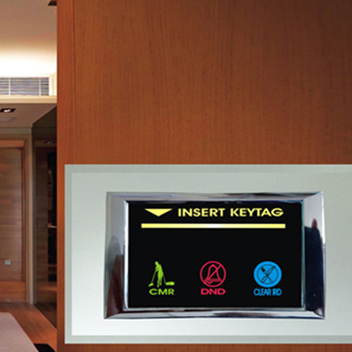 Provides a smart illuminated key card insertion pocket to get exact location of key card insertion point in the darkness. The upper part of key card holder shows a live breathing silent text message “INSERT KEY TAG” to guide the guest to enable power